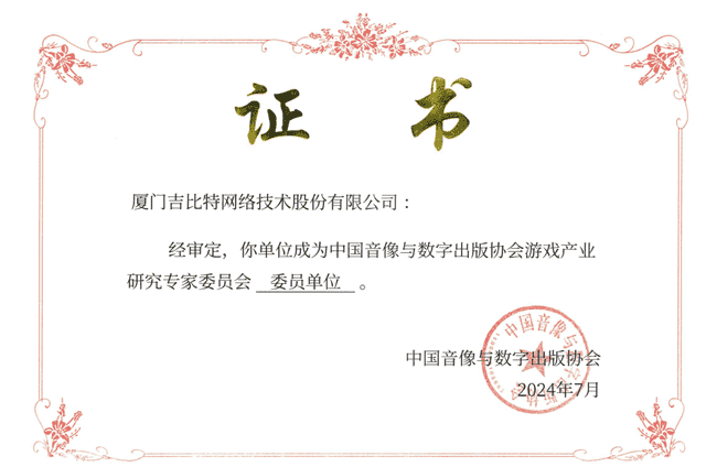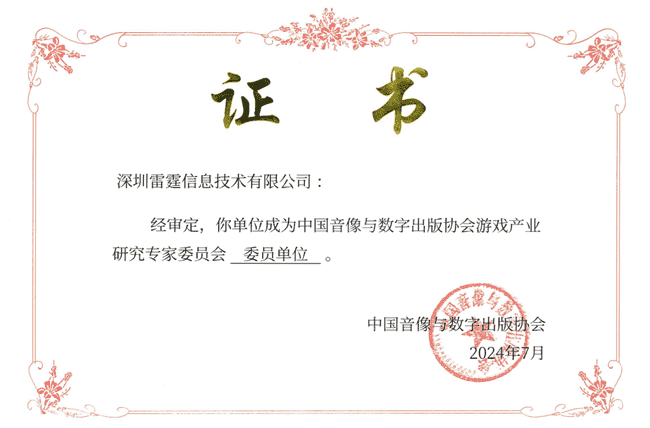 2024年7月25日,,,,中國音像與數字出版協會游戲產業研究專家委員會(以下簡稱“中國音數協游戲專委會”)成立大會在上海市召開,,,,廈門35273網絡技術股份有限公司及其子公司深圳雷霆信息技術有限公司(以下統稱“公司”)正式成為中國音數協游戲專委會委員單位。。
