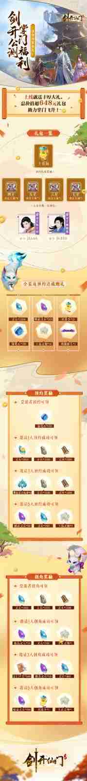 游戲?yàn)榇蠹覝?zhǔn)備了海量的福利,,包括上線即可獲得的全渠道預(yù)約禮包、、、十連抽等福利,,,輸入密令“JK666”、、、、“JK888”即可領(lǐng)取紫色弟子,,,,達(dá)到金丹期后還有功法寶箱可領(lǐng),,助力全宗上下實(shí)力提升……所有獎(jiǎng)勵(lì)總價(jià)值超過648元,,而邀請好友一起體驗(yàn),,,更可以獲得額外的獎(jiǎng)勵(lì)哦~