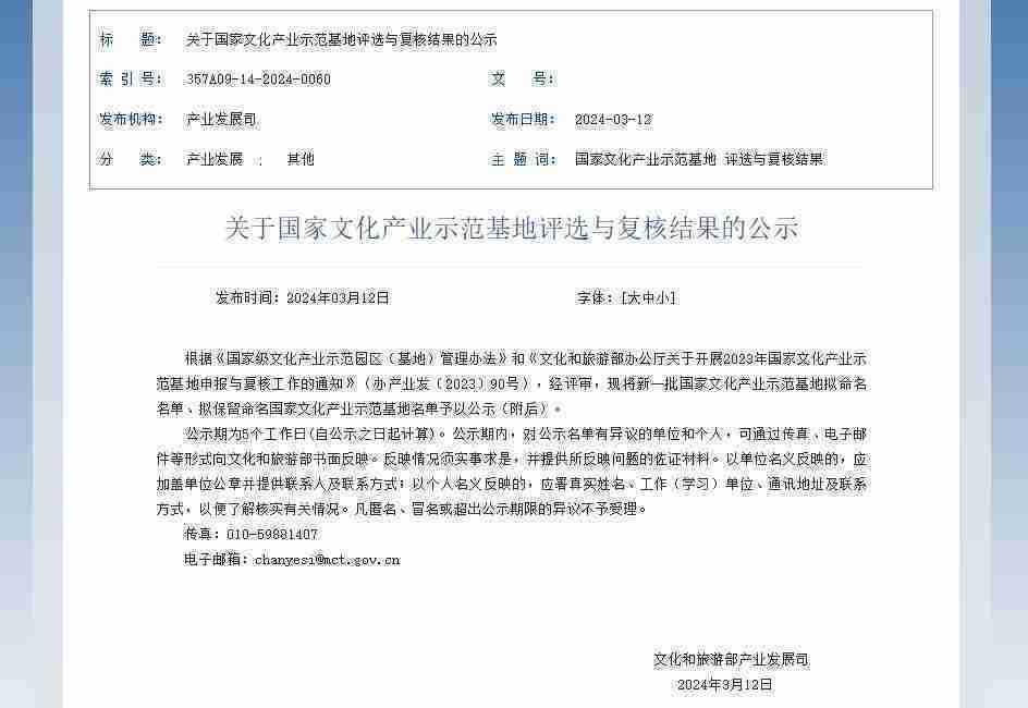 新一批國家文化產業示范基地公示,,,35273成功入圍